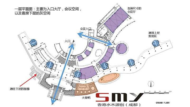 在酒店中无论是垂直方向或水平方向,它的主要功能空间都互不干扰,从而最大化了观海面。