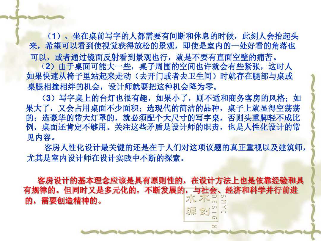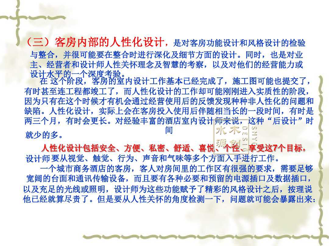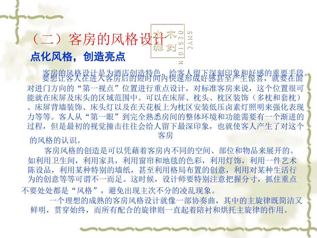 客房是属于用户的私人空间,为客人提供的不仅是物质的享受,还要让顾客获得心灵上的满足。从下面案例中的讲解,我们或许可以加深对酒店客房的印象,进一步了解酒店客房又一个良好的思路。