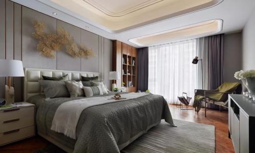 软装布置应遵循多样与统一的原则,根据软装大小、色彩、材料、位置使之与室内空间构成一个整体。商务酒店设计中室内空间要有统一的风格和格调,再通过饰品、摆件等细节点缀,与室内硬装协调统一,这样进一步提升室内空间环境的品味。