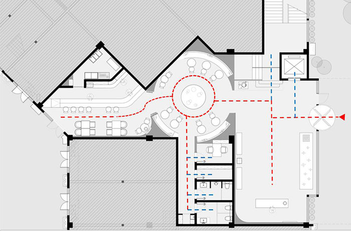 酒店大堂规划是酒店空间规划的重点区域,它是客人来往的必经之地,大堂的首要区域为入口、总服务台、歇息区、公共洗手间等。大堂是酒店对外展现的橱窗,大堂形象也就成为酒店形象的浓缩与升华。酒店入口规划作用强调给客人以第一视觉冲击,同时让客人感到尊重礼遇。酒店入口及门厅也是酒店形象的标志,对品牌营销非常重要。它们的风格与酒店空间全体风格是共同的,大致分为现代式风格、庭院式风格、古典式风格、棚架式风格等。