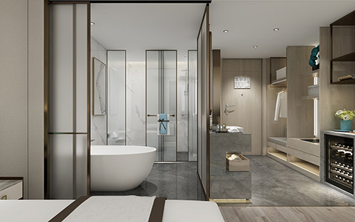 注意客房卫生间干湿分区,不小于5m2.必须做二次地漏设防水基层,(防水高不小于1.5m高及湿区需到吊顶高度)墙砖为浅色,地面防滑砖,墙面砖有一定的造型纹理,墙砖基本尺寸(600*150mm\600*300mm\600*450mm\600*600mm)
