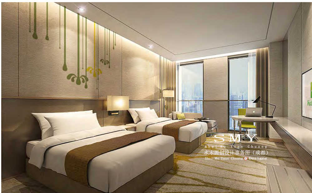 客房是所有酒店的最终焦点,优雅,精良的设计设计会使每间客房和浴室给疲倦的客人酒店的感觉,在客房的设计中利用精美的艺术品,手工装饰品及墙纸和家具,设立了客房和浴室的基调。它们自然的色彩及不同的物体表面肌理效果,使室内弥漫着一种温馨,家具和合理摆放能帮助客人自由的交流与工作,并可满足不知懈怠埋头工作的客人的心灵需要。