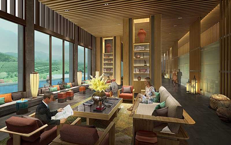 首先进入吉安精品酒店设计的大堂,井然有序的流线,错综交织的灯光,灰、木、金的质感基调,打造出简洁大气而又高贵的感觉。现代实木材质打造一处半封闭式的隔墙,若隐若现。下沉式大堂主灯让整个空间显得格外的大气。