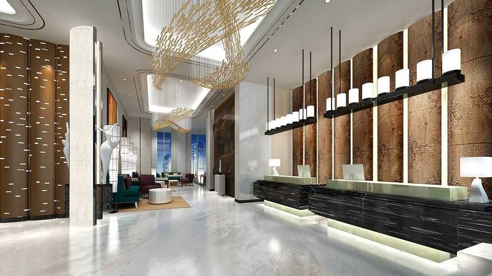 酒店大厅的设计线条流畅,上下呼应,造型体格轻盈,具有动感,色彩和谐统一而具有层次变化。