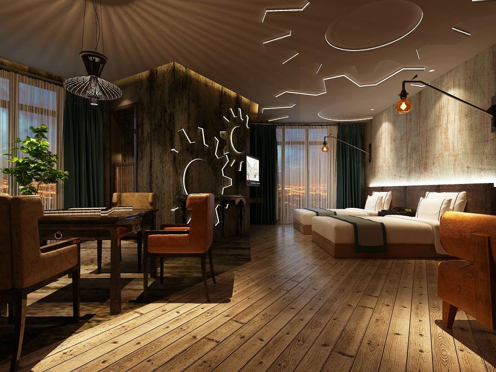 主题酒店为应对不同审美的消费者,因在色彩的搭配、元素上做到最大程度的 使消费者的水准。营造一个受欢迎的主题酒店空间。